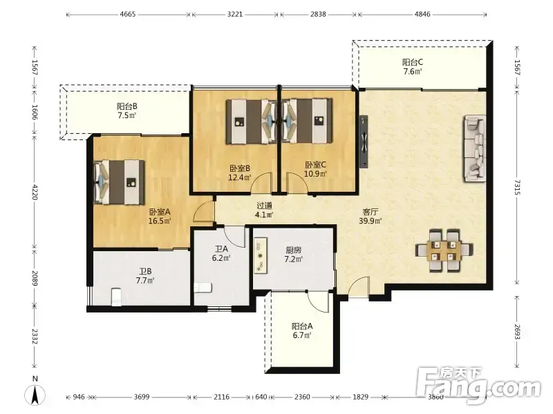 户型齐全,主打户型方正,餐客分离三居