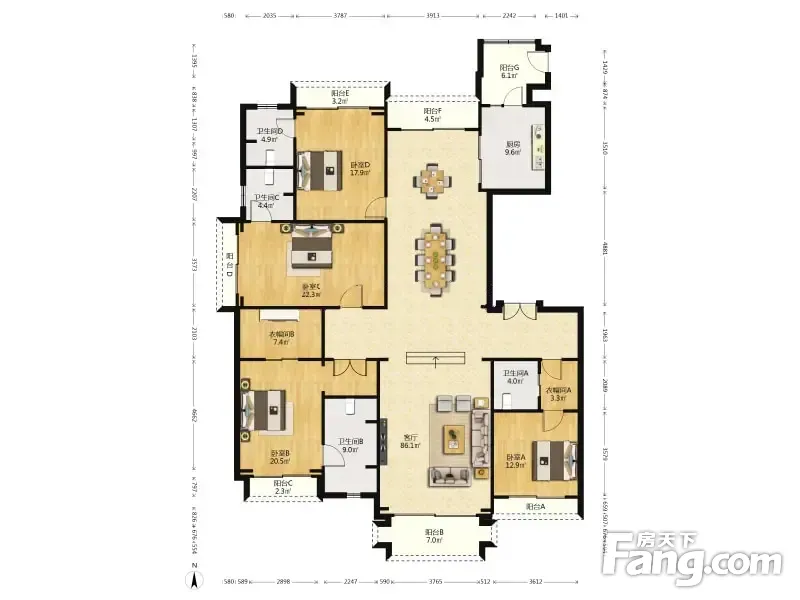 房屋拥有相对宽松的尺寸,布局通透,动静分离,设计豪华