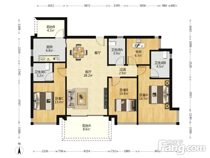 户型齐全,主打全明格局,户型方正,动静分离四居