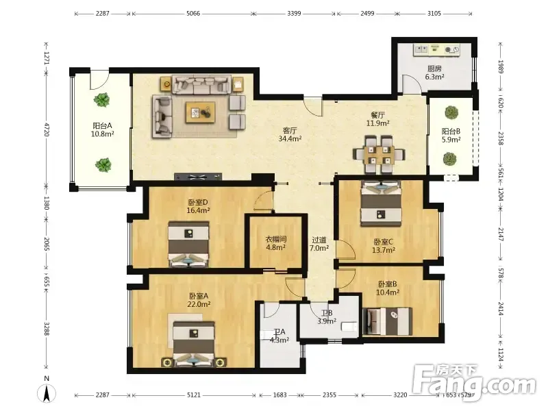 户型齐全,主打明厨,明卫,客厅朝南四居
