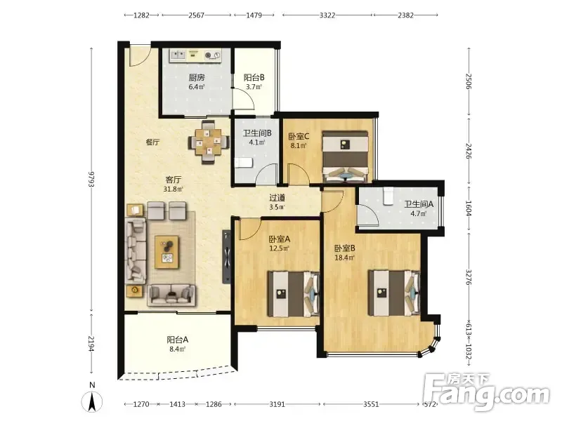 3室2厅1卫