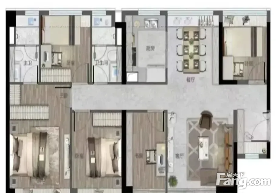 房屋拥有相对宽松的尺寸,布局通透,动静分离,设计豪华。
