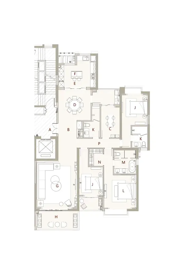 房屋拥有相对宽松的尺寸,布局通透,动静分离,设计豪华