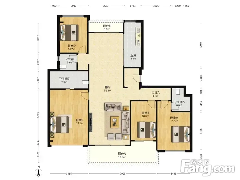 房屋拥有相对宽松的尺寸,布局通透,动静分离,设计豪华