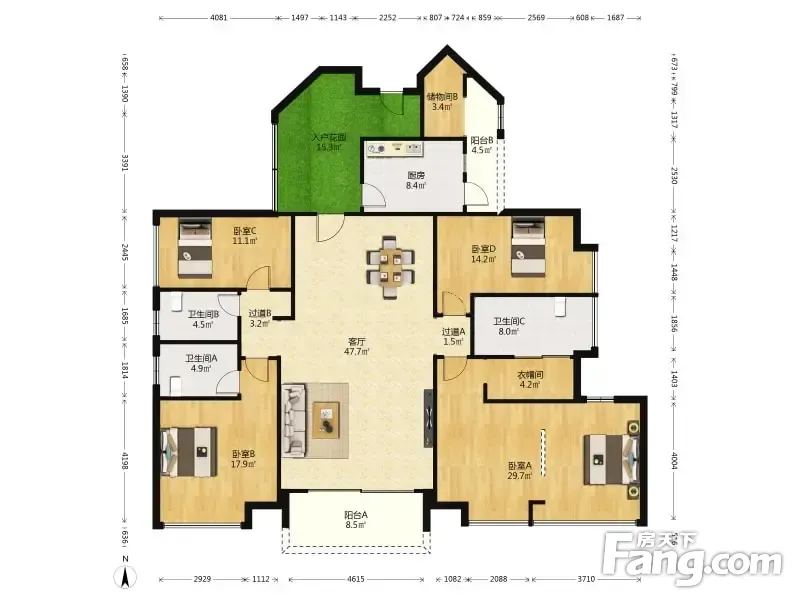 房屋拥有相对宽松的尺寸,布局通透,动静分离,设计豪华