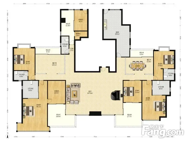 房屋拥有相对宽松的尺寸,布局通透,动静分离,设计豪华