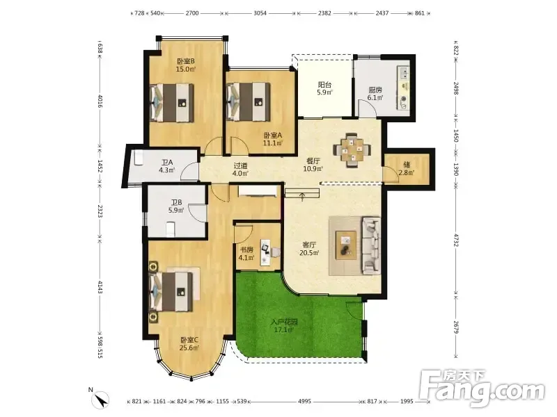 房屋拥有相对宽松的尺寸,布局通透,动静分离,设计豪华