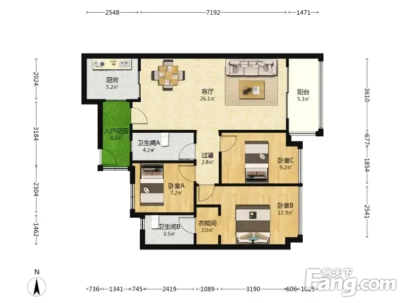 3室2厅1卫