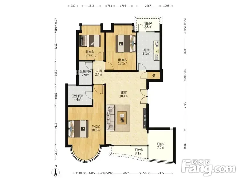 户型齐全,主打户型方正,明卫,双阳台三居