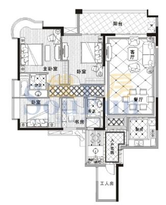 房屋拥有相对宽松的尺寸,布局通透,动静分离,设计豪华
