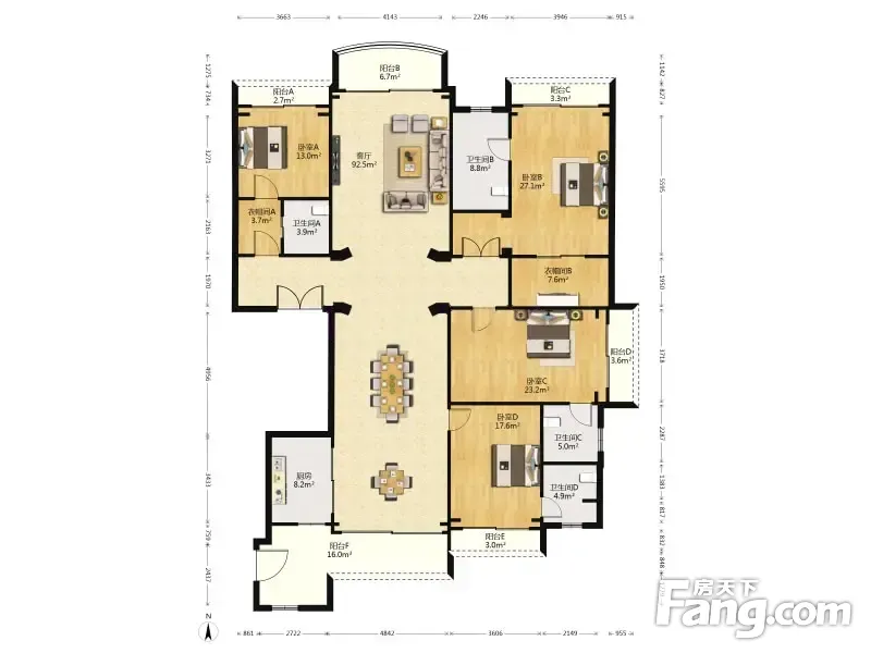 星河湾半岛户型主要有254平-315平的户型方正,采光充足,厨卫不对门的四居 、394平-682平的南北通透,动静分离,主卧带卫的五居 。