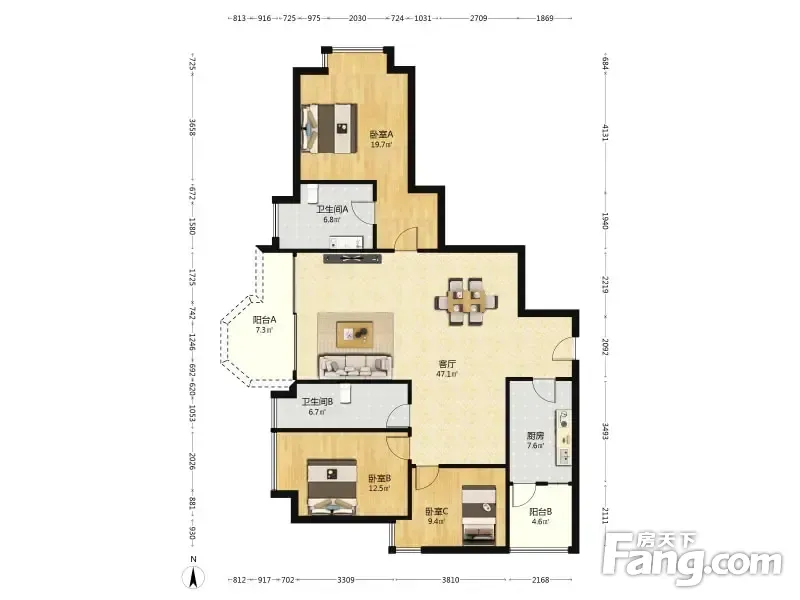 户型齐全,主打明厨,客厅朝南,主卧朝南三居