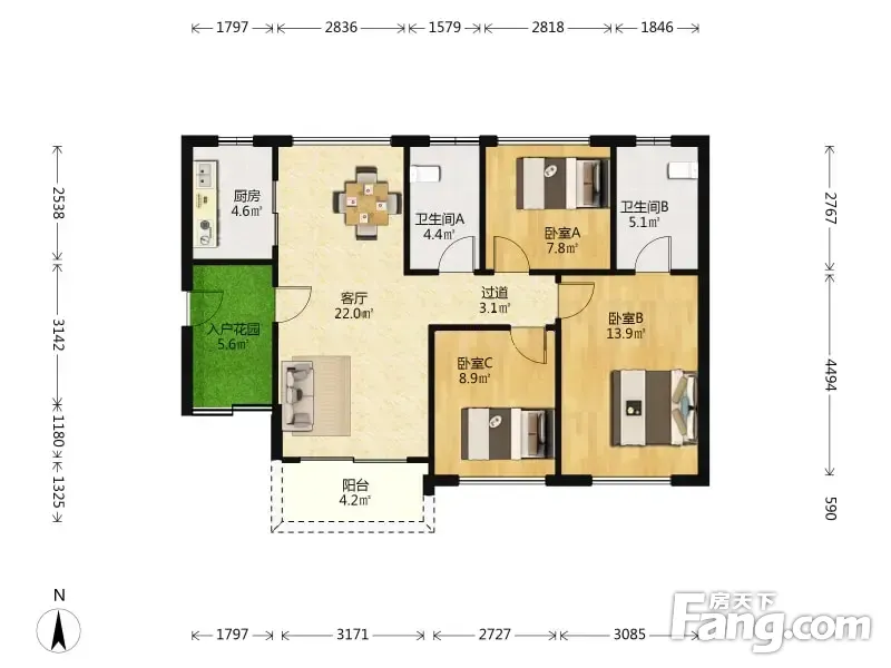 3室2厅1卫