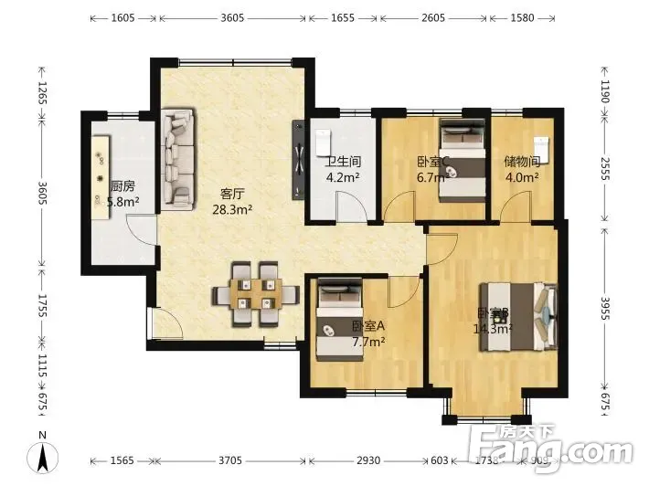 户型齐全,主打全明格局,户型方正三居