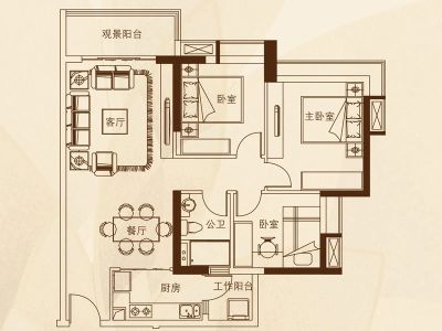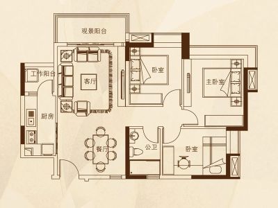 户型齐全,主打户型方正,双阳台三居