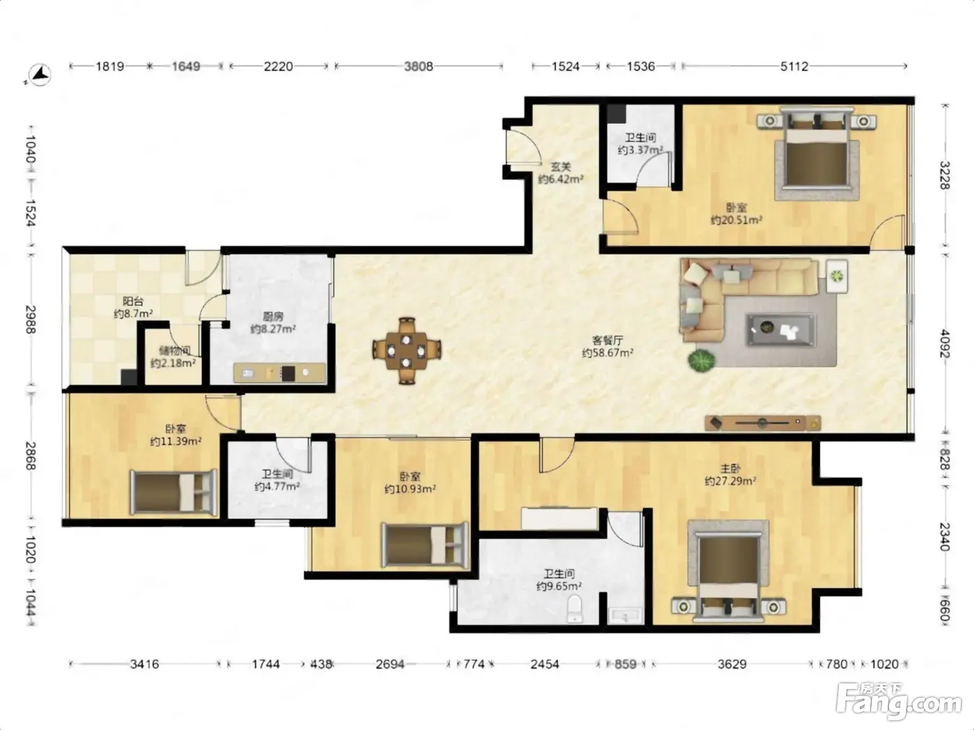 户型齐全,主打明卫,明厨,独立衣帽间,双阳台四居