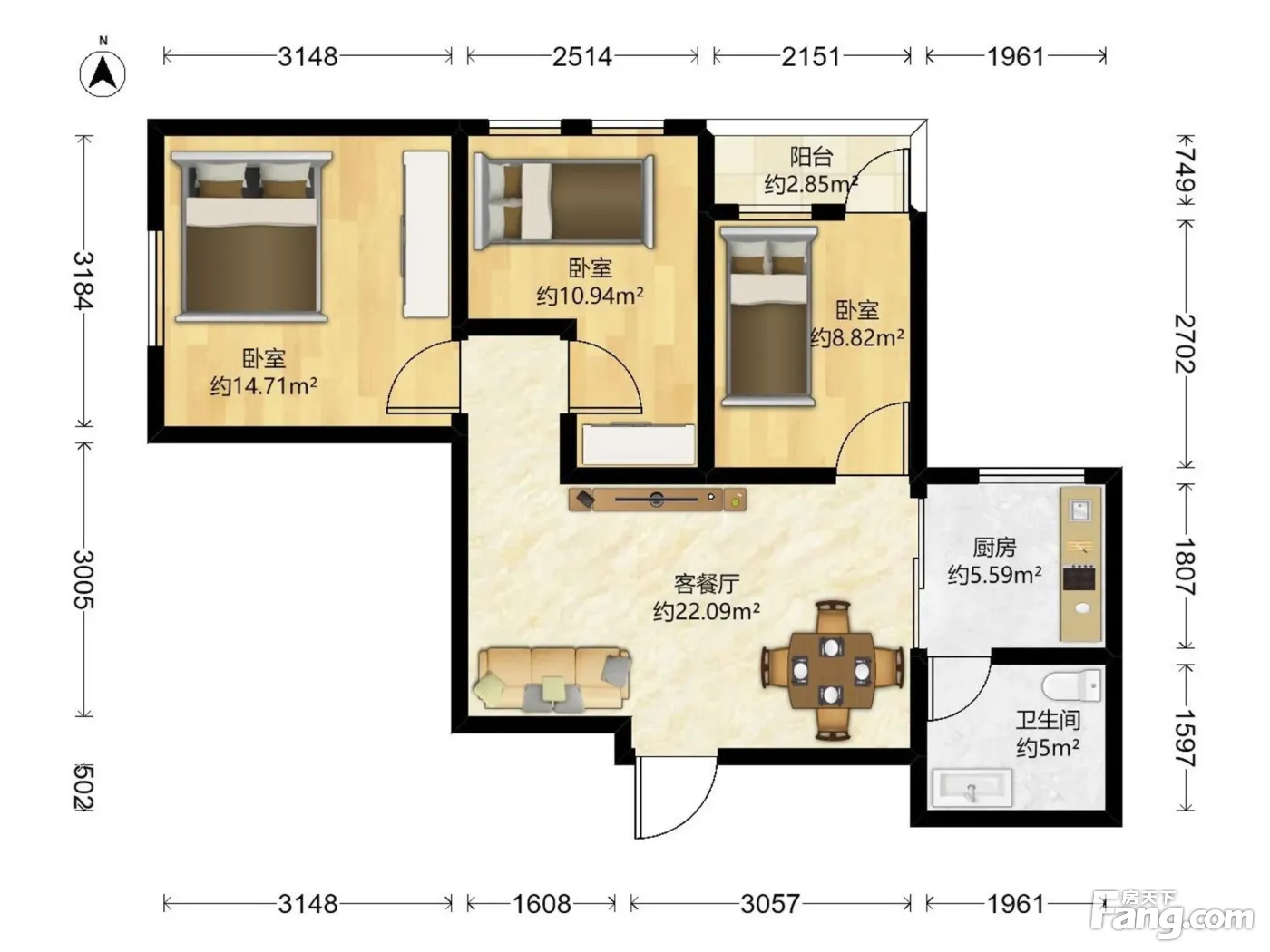 3室2厅1卫
