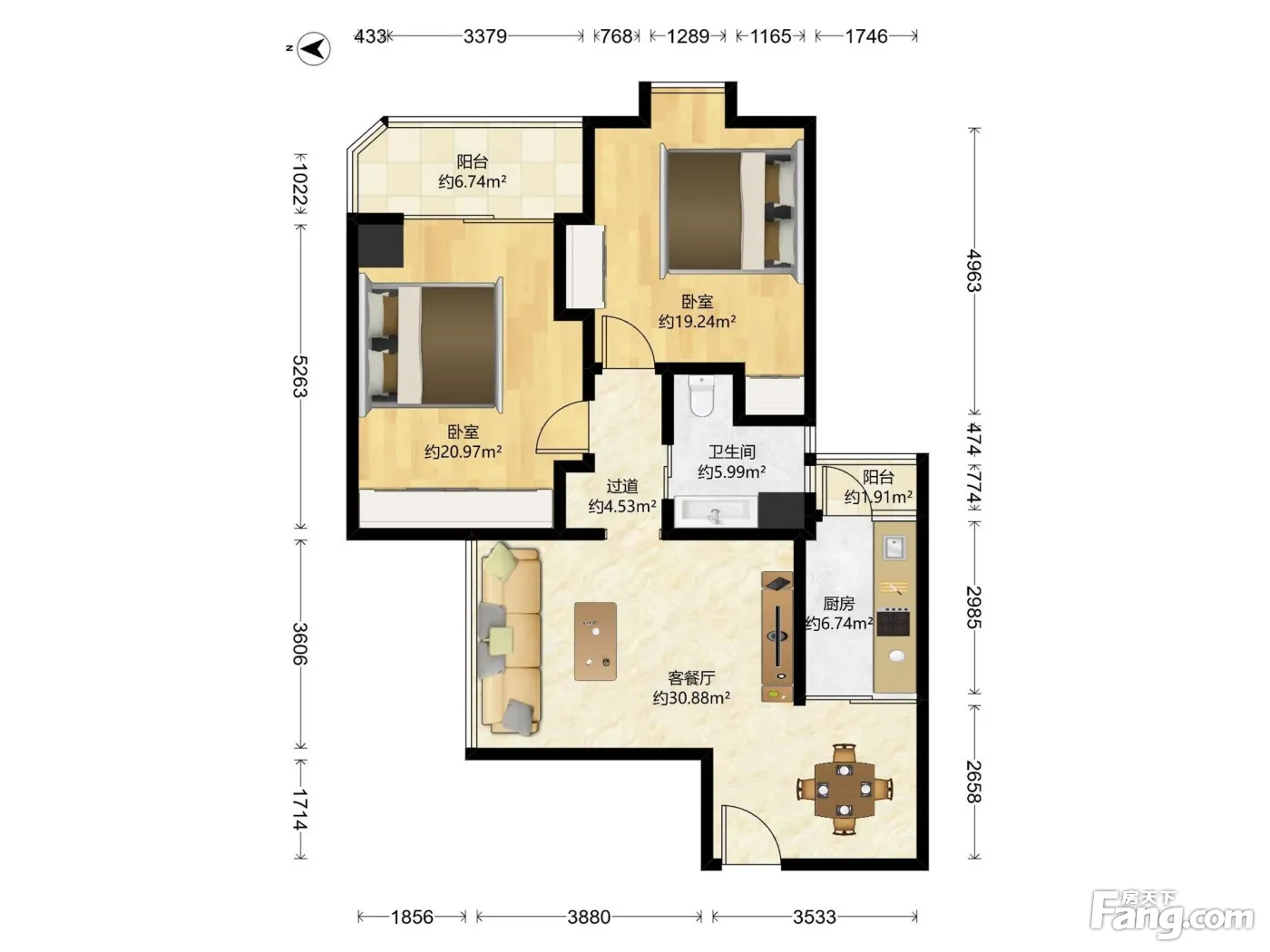 户型齐全,主打明厨,客厅朝南二居