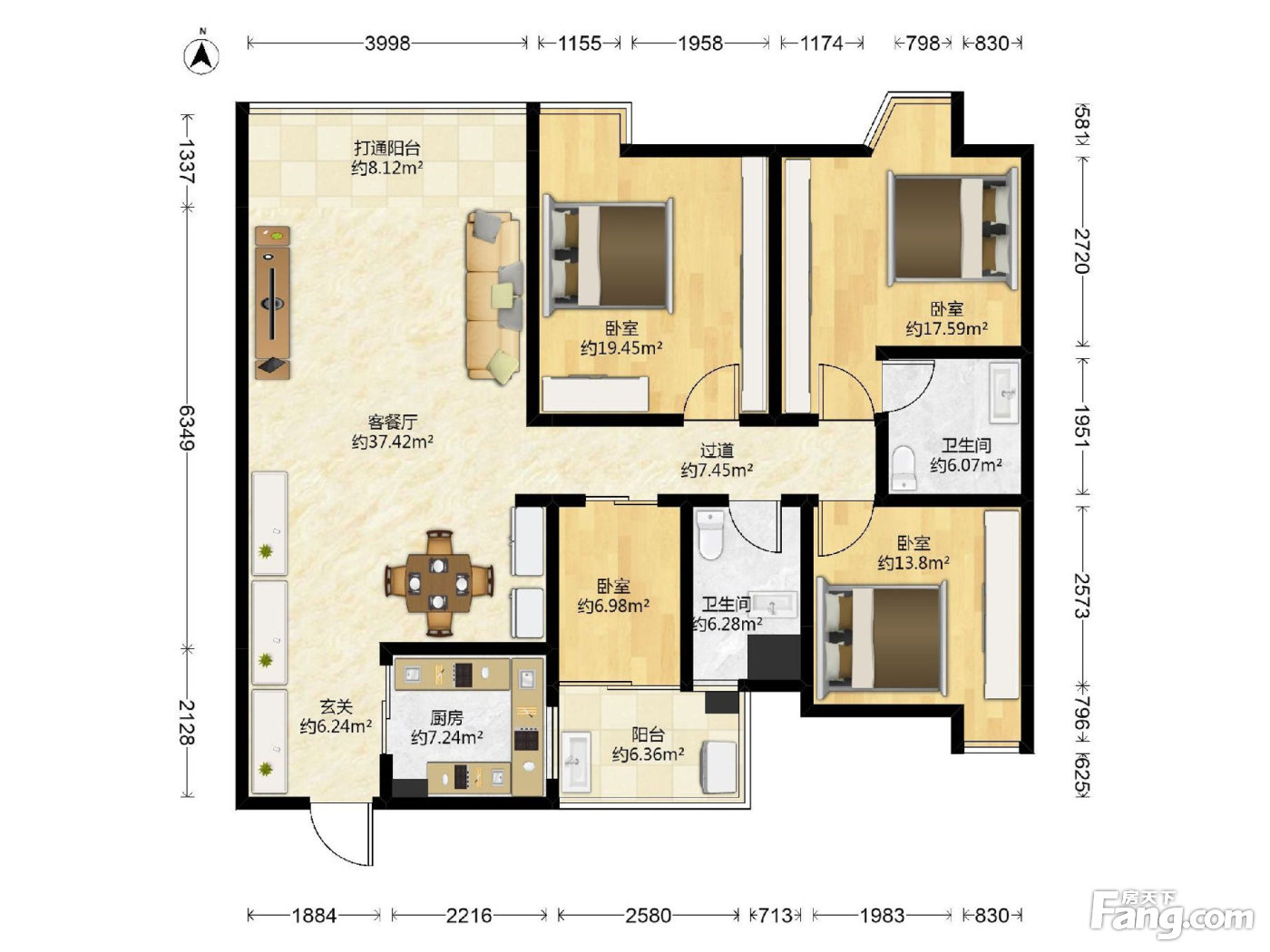 户型齐全,主打明卫,客厅朝南三居