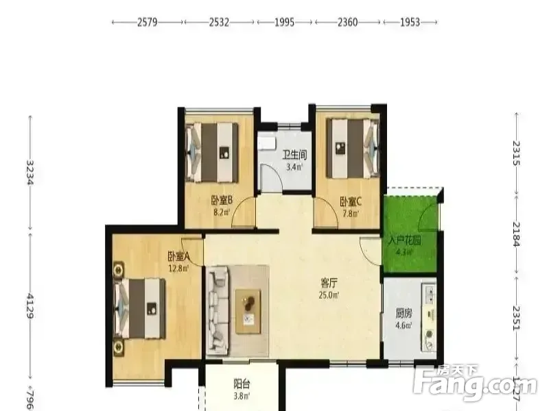 户型齐全,主打客厅朝南,厨卫不对门,入户花园三居