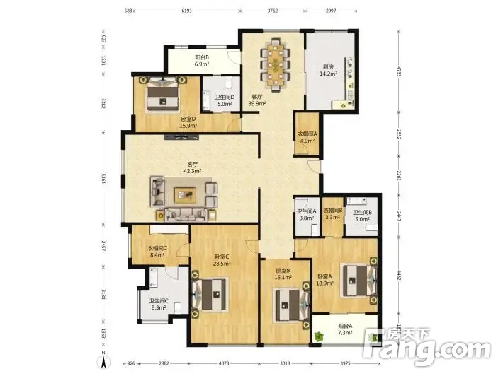户型齐全,主打全明格局,南北通透,户型方正三居