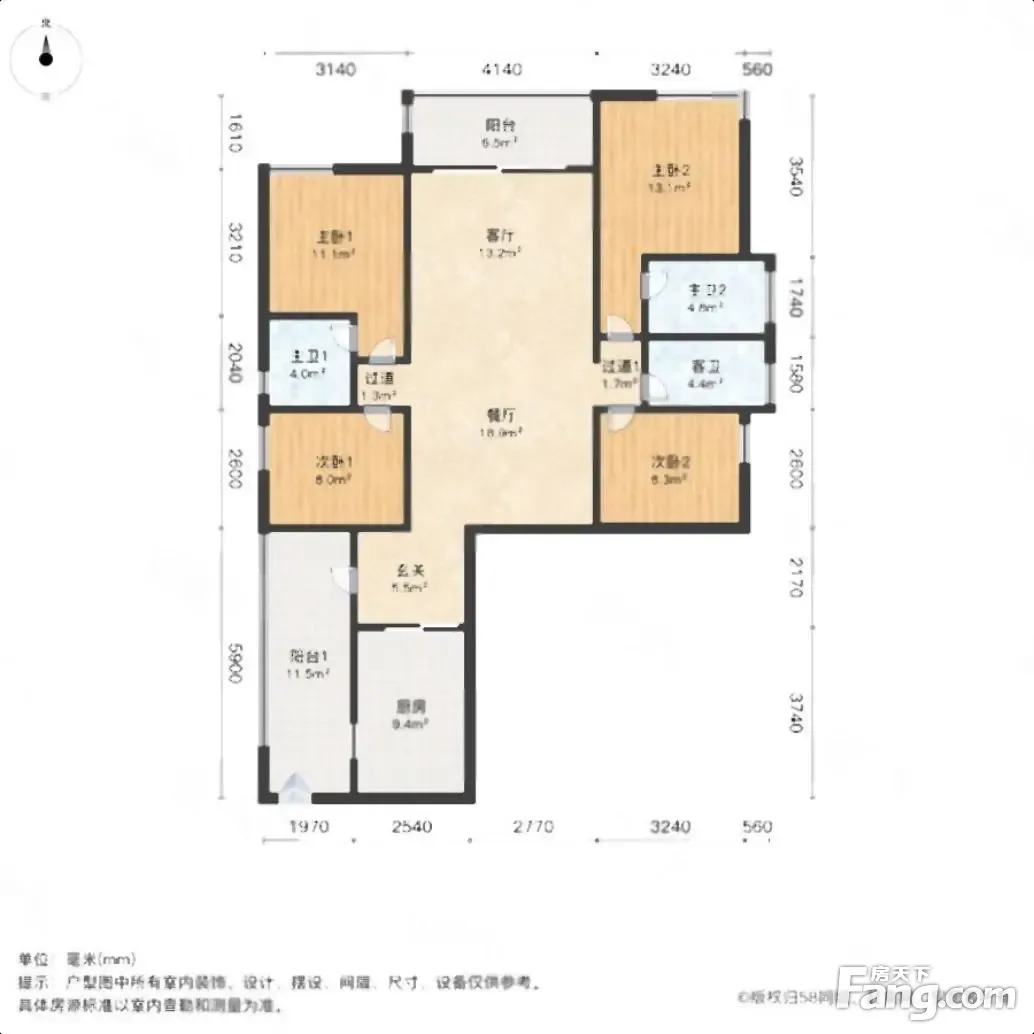户型齐全,主打户型方正,动静分离,主卧带卫三居