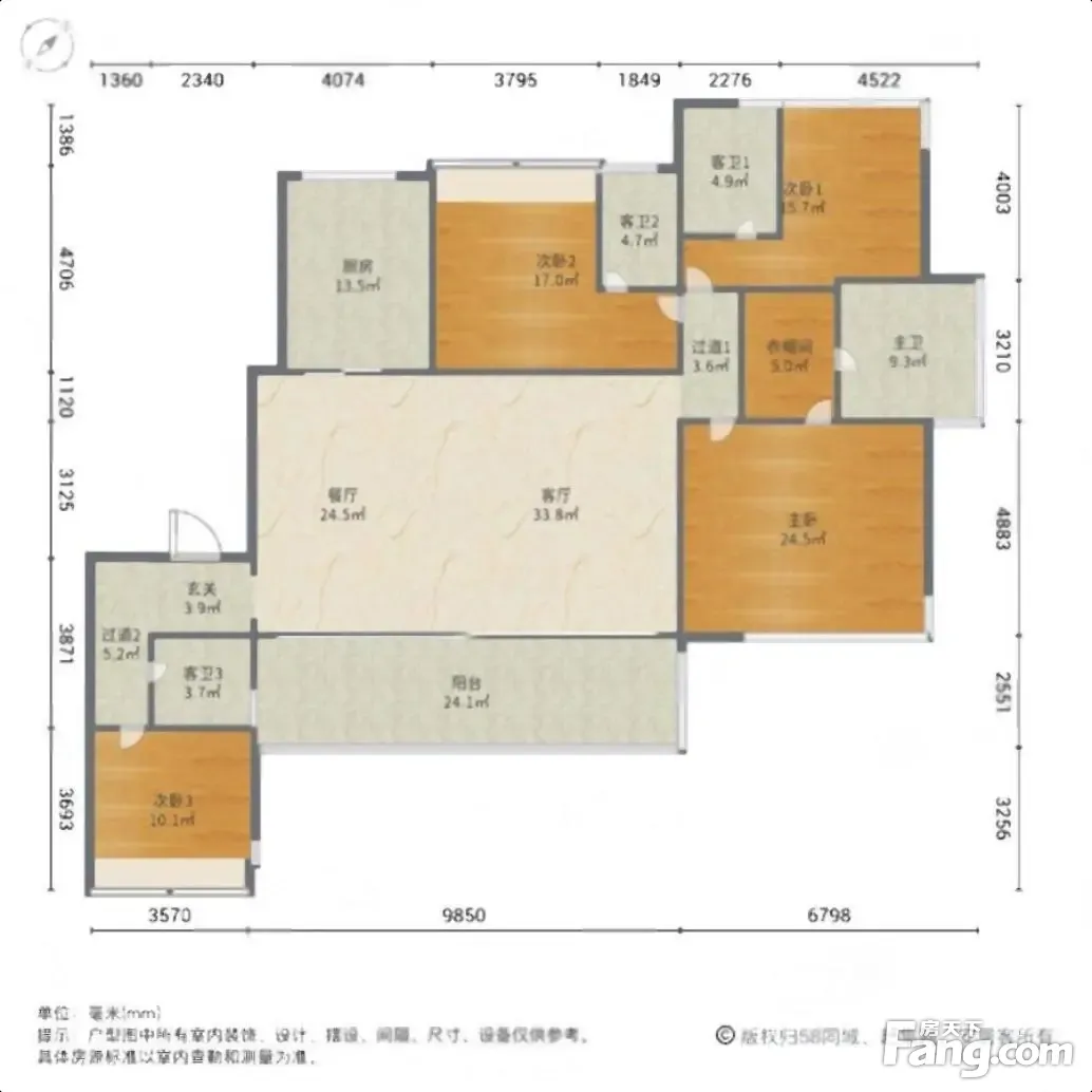 户型齐全,主打户型方正,明卫,独立衣帽间,明厨,双卧朝南五居