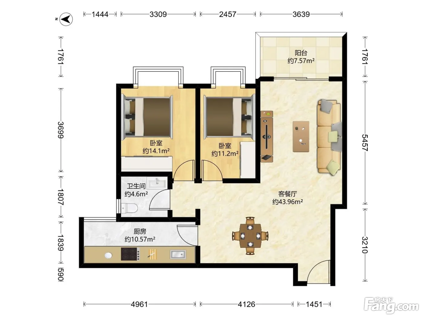 淘金家园 2 房 92.35 方