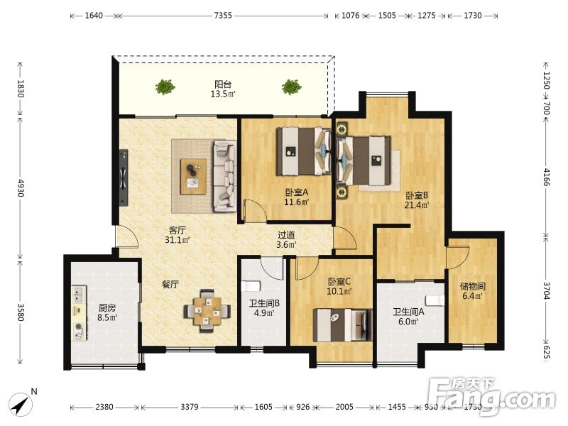 房屋拥有相对宽松的尺寸,布局通透,动静分离,设计豪华