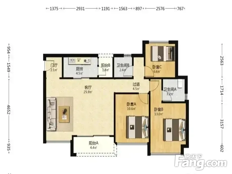 3室2厅1卫