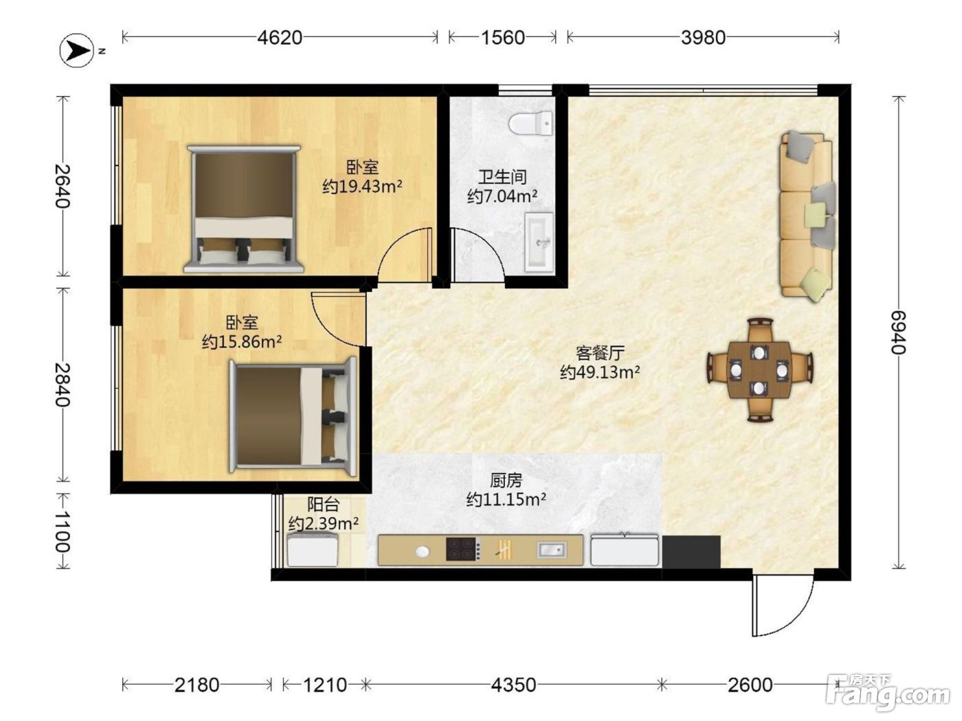 2室2厅1卫