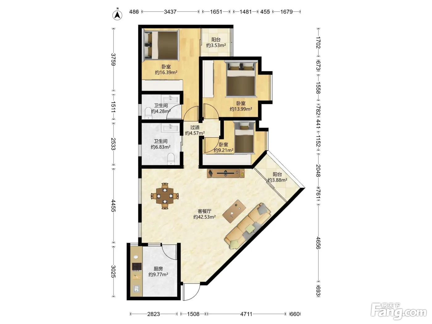 户型齐全,主打独立衣帽间,明厨,明卫,双卧朝南三居