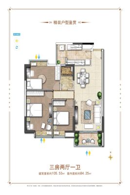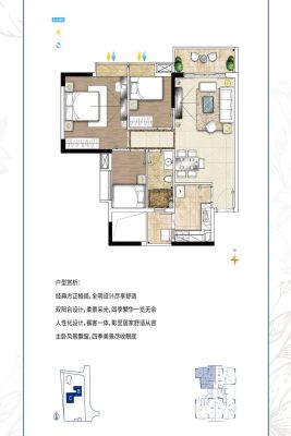 户型齐全,主打动静分离,客厅朝南,主卧朝南,观景飘窗,厨卫不对门,双阳台三居