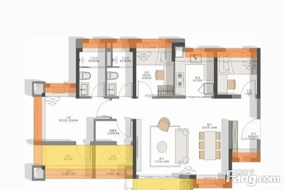 房屋拥有相对宽松的尺寸,布局通透,动静分离,设计豪华。