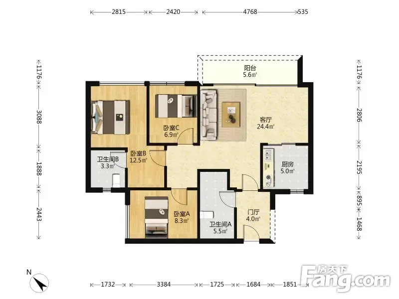 3室2厅1卫