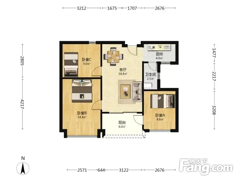 东海花园 3室1厅 77.06平