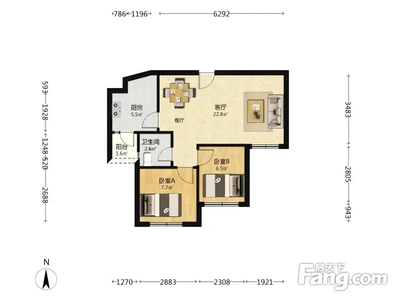 户型齐全,主打客厅朝南二居