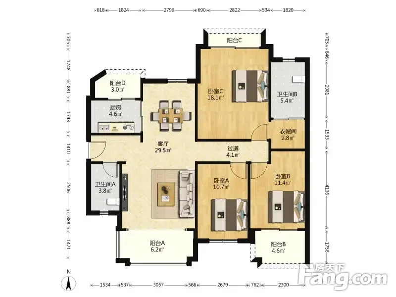 户型齐全,主打户型方正,明卫,独立衣帽间三居