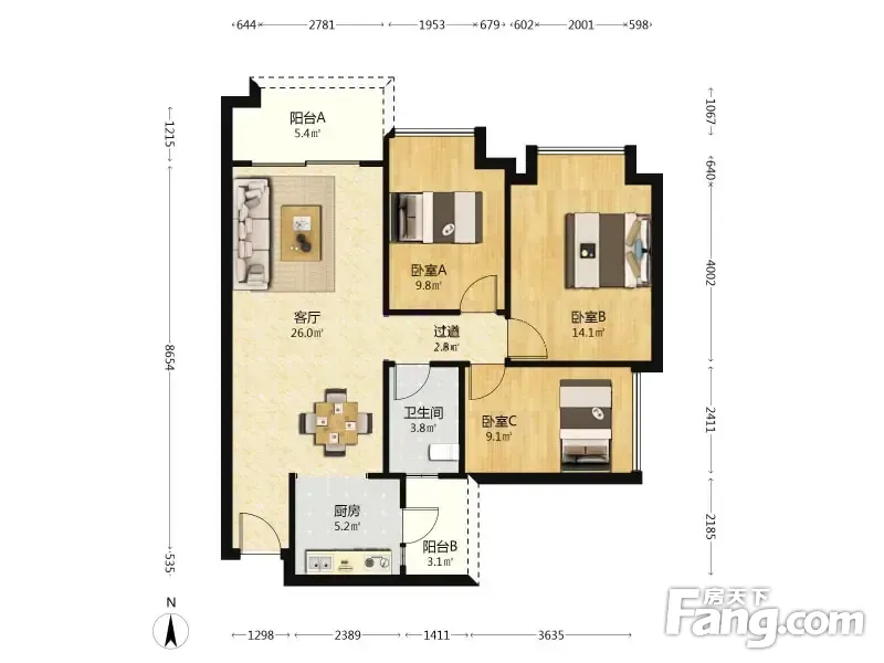 3室2厅1卫