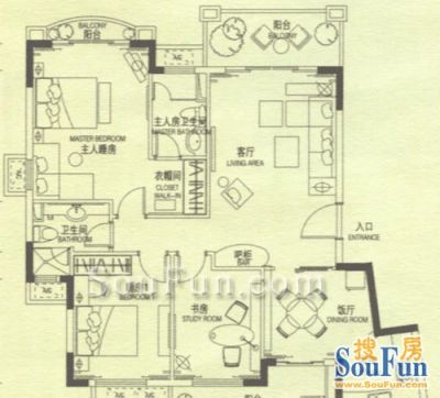 房屋拥有相对宽松的尺寸,布局通透,动静分离,设计豪华