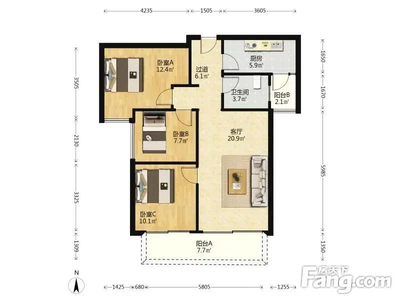 户型齐全,主打南北通透,户型方正,挑高客厅,主卧套间,带衣帽间,U型厨房三居