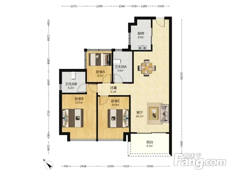 户型齐全,主打南北通透,全明格局,户型方正二居