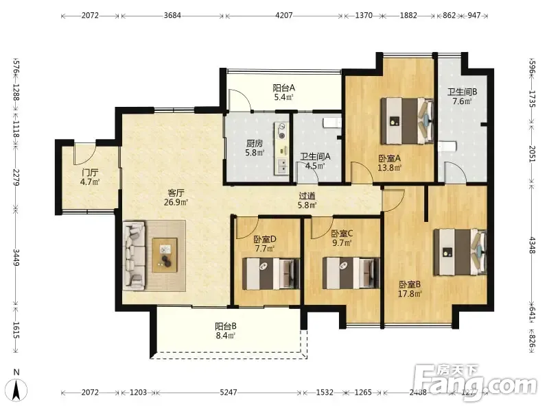 越秀滨海悦城 4室1厅 135.68平