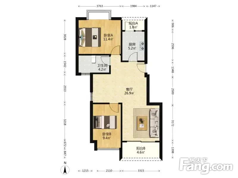 户型齐全,主打明卫,双阳台,双卧朝南,主卧朝南二居