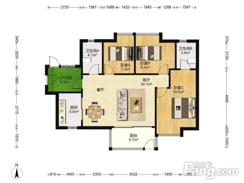 万科南方公元 3室1厅 96.43平