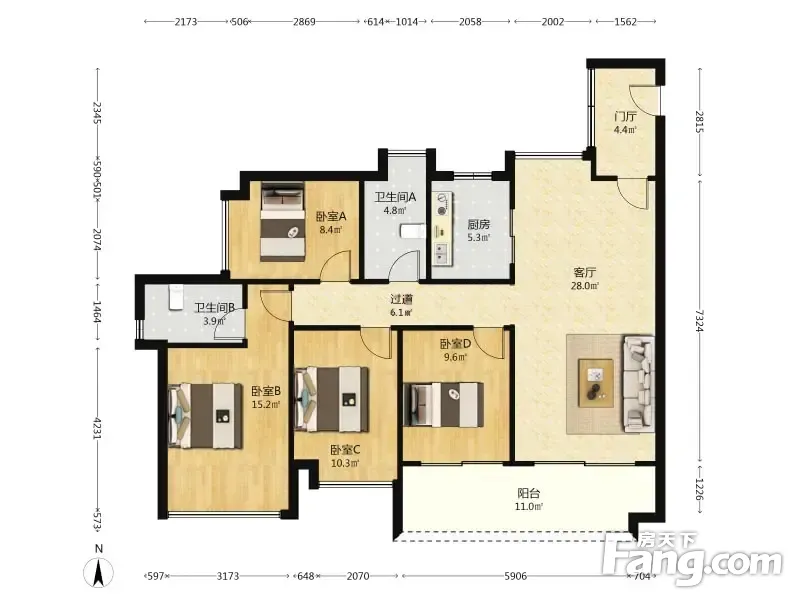 星河·东悦湾 4室2厅 128.83平