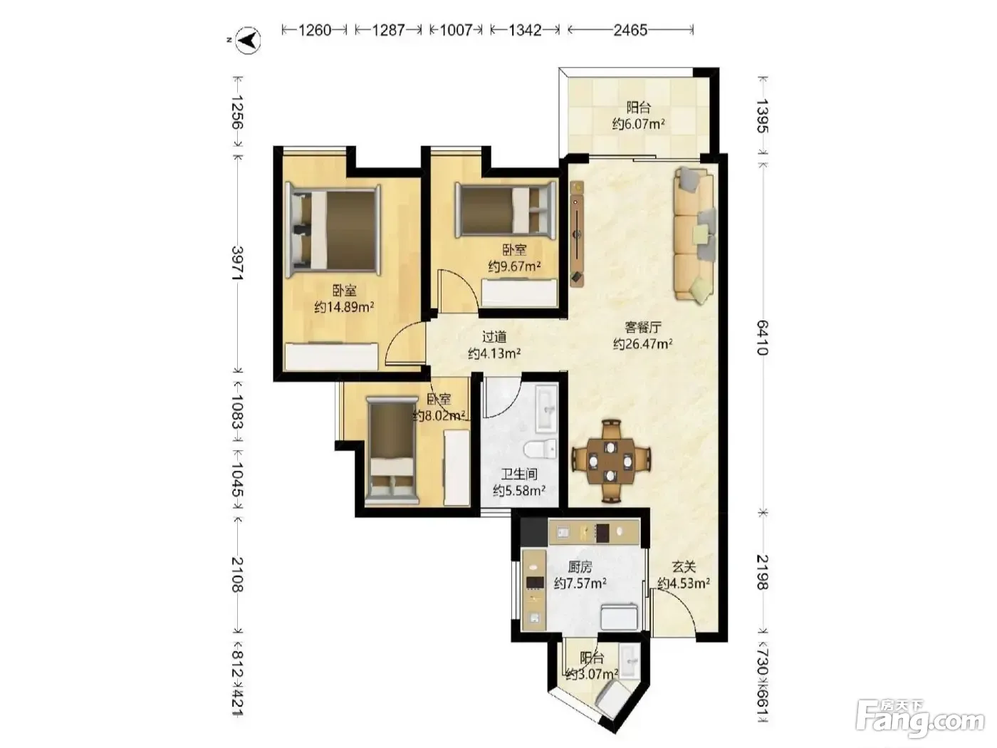 户型齐全,主打全明格局,户型方正,动静分离三居