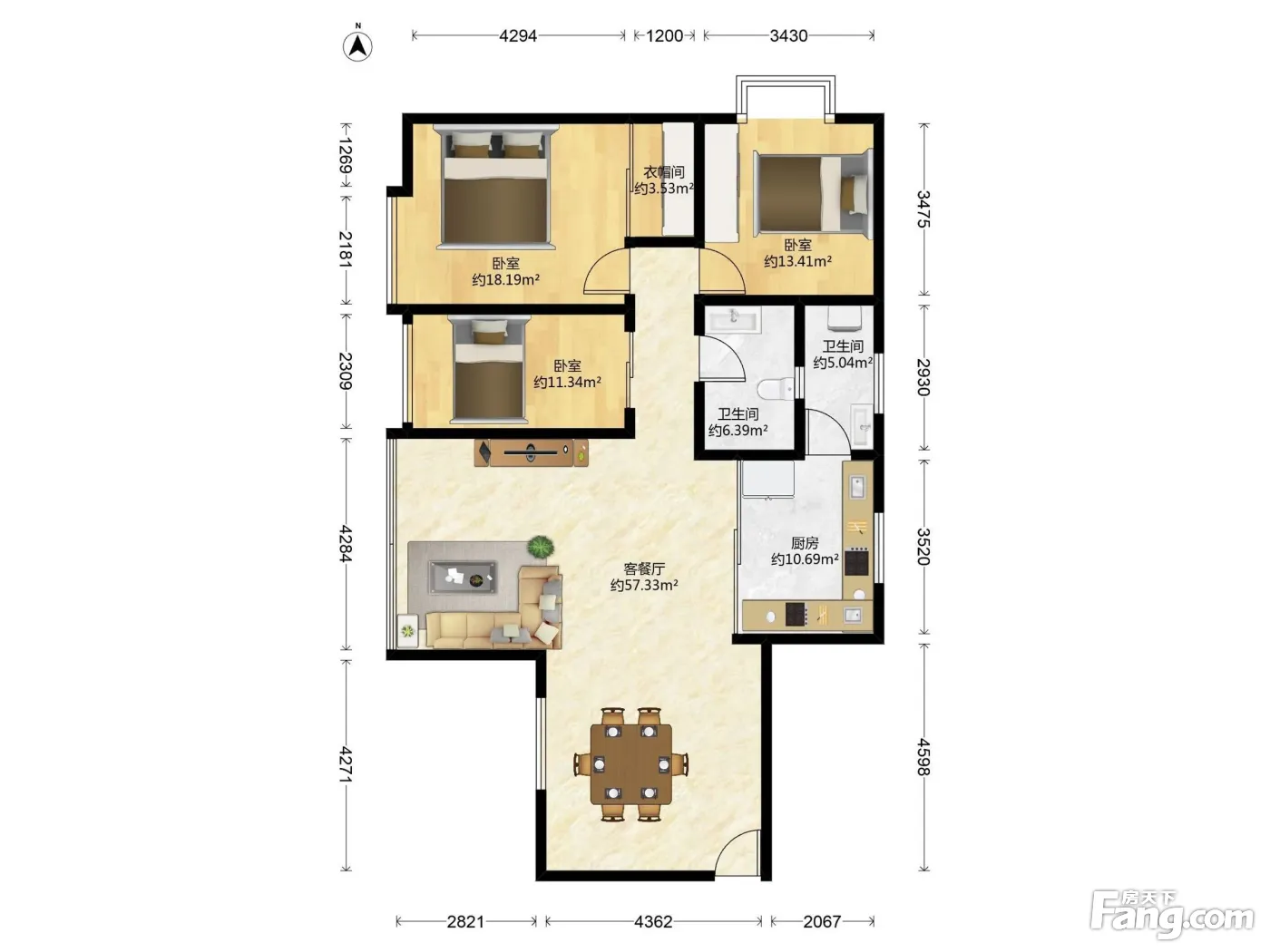 户型齐全,主打明厨,客厅朝南三居