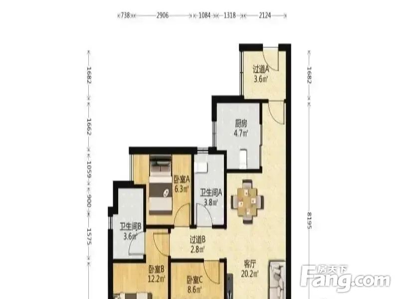 户型齐全,主打南北通透,全明格局,采光充足三居