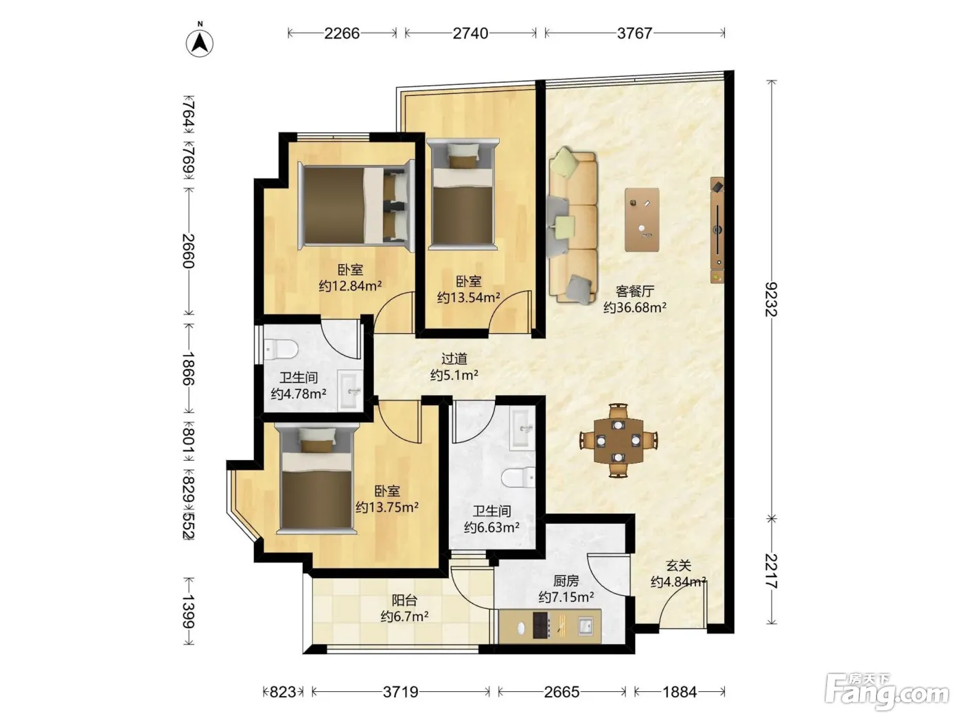 户型齐全,主打明卫,客厅朝南三居